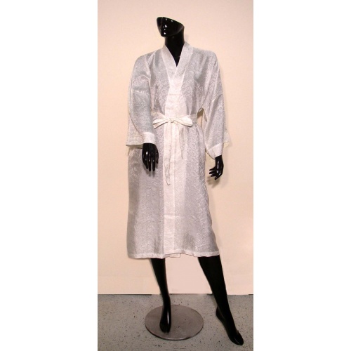 Made in Vietnam from 50% silk and 50% polyester, this kimono is stunningly beautiful and exquisitely patterned with flowered designs. Amazingly light and soft to the touch, this kimono provides the wearer with a sense of freedom and comfort.