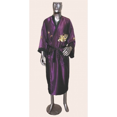Made in Vietnam from 100% silk, this double-sided, reversible hand-made kimono is amazingly beautiful and super soft.   Hand embroidered on the back with a dragon and phoenix, and on the front with a phoenix and clouds, this is the best kimono you will ever find anywhere.  Luxurious is the word we use to describe the feeling one gets when one wears it. And, the magnificent rich colors are sure to give you a classy stylish appearance.   This is Vietnam Elegance's most popular Signature Collection Item!